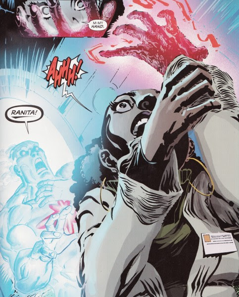But even though the pacing was slow, I'm letting Captain Atom move up the ranks to get ahead of The Flash. Partly it's because of this panel that happens just after you think a little romance is about to happen as Ranita shows Captain Atom that she isn't afraid of him: