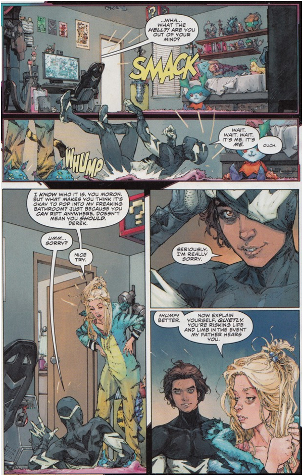 Speaking of terrible comic book tropes that never die (which is what makes them tropes! Geez! Get a dictionary, fatty! (HEY!)), Derek seems to be a boy genius who was about to get an internship with some science firm that had the kind of name that screams "Subsidiary of LexCorp!" His boss was going to be Ms. Dominus so she was probably mutated in the events of Metal as well and will become his nemesis. I probably won't ever know if I was right about this guess because I will not be buying Issue #2. I made that promise to myself when I bought this issue. I was all, "Hey, fatty. You're only getting this one for the schadenfreude. Don't even think about buying a second issue of this crap." I agreed with myself and wiped the tears from my eyes before buying the book. Why was I always so mean to myself?