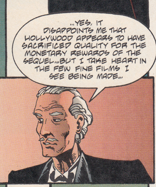 I don't know if I've ever read anything by Steve Ditko but my brain tells me I'm a fan of his simply because my favorite series of all-time is Peter Milligan's Shade the Changing Man, a character invented by Steve Ditko. And I only picked that series up when the first issue dropped because Shade had been on Ostrander's Suicide Squad. So if we work backward from Milligan's comic, my fave, to Ostrander's comic, my mainstream DC fave, and back to Ditko's Shade, I would probably find it mediocre! I'm just using mathematical graphs to produce logical results, you know. Or, and let's assume this is really the case, I would fucking hate it because Objectivism can kiss my puckered butthole. Now, I don't know for sure that Ditko's Shade the Changing Man had any Objectivist bullshit in it, especially since it was scripted by Michael Fleisher. I have to assume that Ditko's art and plotting of the story didn't hide any of Rand's idiotic version of nihilist existentialism in it.