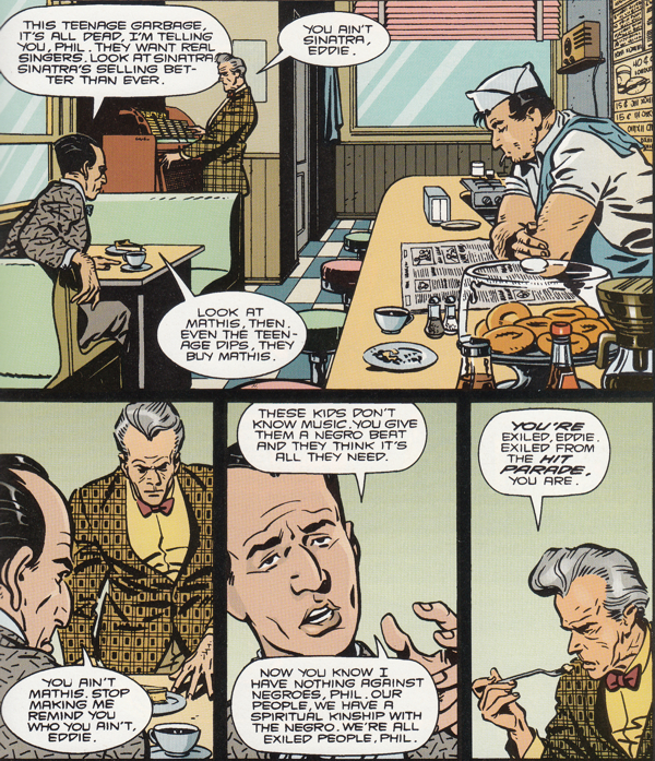 What are these upstanding, non-Juvenile Delinquent crewcuts doing in a jazz café?! Aside from the good work of bullying people into being "normal".
