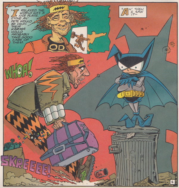 Batman captures Petite Pete and Stone but Overdog gets away just as the mescaline kicks in. So that bit about this not being an imaginary story? Take that with a hallucinogenic grain of salt.