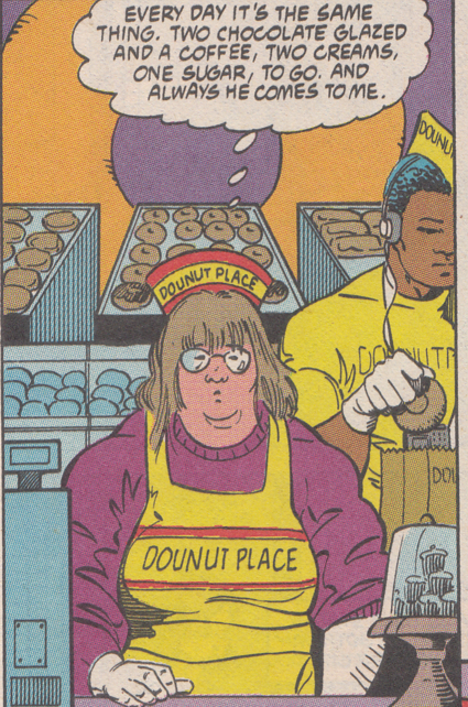 Mary is either optimistically hopeful or seriously delusional. Perhaps those are just two expressions of the same attribute. But also I saw the cover to Issue #4 so probably delusional. She believes a man that orders from her every day is secretly in love with her. In her internal fantasy of his eventual declaration of love for her, she looks nothing like she actually looks. So, again, delusional. Although I'd still argue, quite emphatically, actually, that being optimistically hopeful is just a kind way of calling somebody seriously delusional.