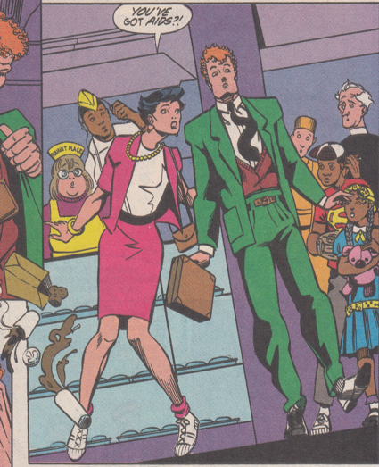 Jennifer assumes Jimmy's gay because he hasn't tried to fuck her even though every story she tells him begins and ends with her saying, "I just love dick!" He assures her that she isn't gay but I think what he's really doing is assuring the Comics Code Authority that he isn't gay while the readers are all, "Oh yeah. He's gay. Cool. Sad he can't embrace it though. He should also be telling stories where he begins and ends with 'I just love dick!'"