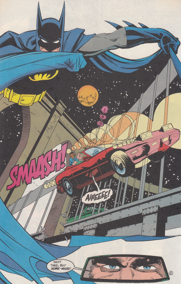 Now, I'd like you all to prepare yourselves because I'm going to scan an image that could trigger some of you. It's Dan Jurgens version of the late '80s/early '90s Batmobile.