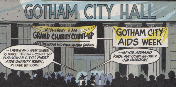 Oh, also, I guess that's Bruce Wayne on the cover? I was refusing to allow for that possibility since Batman's on the previous cover and they fit together like a poster. Maybe I'm wrong. Perhaps it's the mayor?