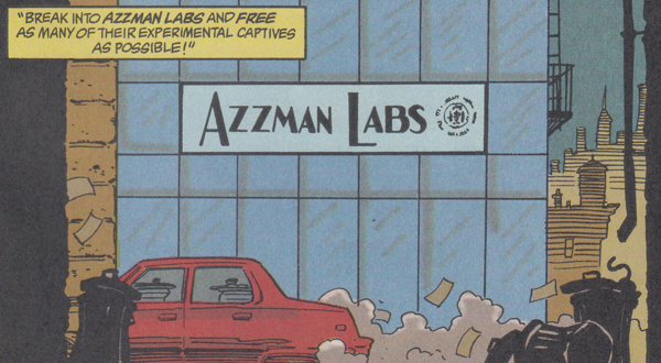 Anyway Batman realizes that The Flea wants to help catch his grandfather's murderer and Batman eventually accepts his help but with the caveat that he's still going to jail later for, I don't know, daring to kick Batman in the face, I suspect. Luckily Batman read Kadaver's lips before Batman was kicked in the face by The Human Pubic Louse which, if anybody else had seen happen, would ensure that Catwoman would never kiss him again. He learned that Kadaver was headed to that huge lab in Gotham where they experiment on all of the animals. I think it's called Wayne Industries Labs. Or something. Don't listen to me. I'm a liar.