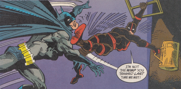 Idiot! Don't give Batman clues as to your identity while you kick him in the chin!