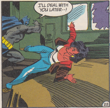 Batman makes sure to think in one of his narration boxes about how he slipped the guy he punched in the face $100 to make up for it. Just like a rich guy. Thinks money excuses any behavior.