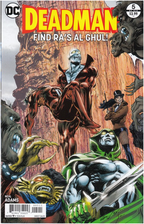 When I first saw this cover, I thought Neal Adams had finally finished having the stroke he started having while writing The Coming of the Supermen. "Deadman find Ra's al Ghul!" It's not like it was any less coherent than most of his tweets on Twitter. But then I realized the tagline was a command and spent all of three nanoseconds searching for Ra's al Ghul. Couldn't Neal have made it any harder? It's obvious that Ra's is up Deadman's ass.