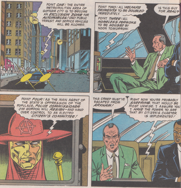 • I bet when Anarky is stopped, Batman will lecture him and be all, "Your heart is in the right place but you're going about things the wrong way. You have to change the system using civility and decorum and by rocking the vote!"