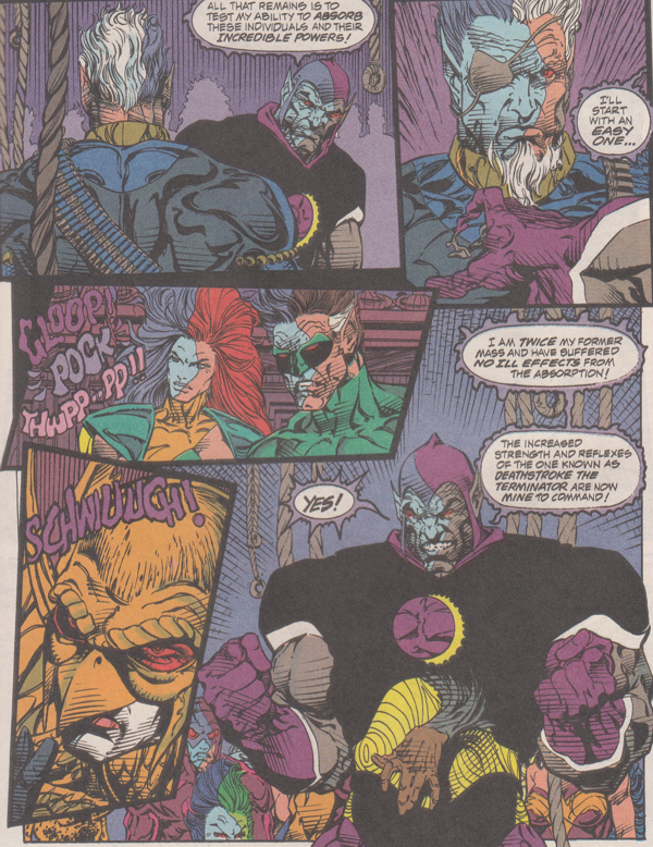 • I don't know why Deathstork was "an easy one" but I'm going to assume it has to do with his age. It's like how old people are so easily absorbed by Fox News. They just turn to the channel and they're all, "Oh no! I'm scared of everything now! Kill brown people!"