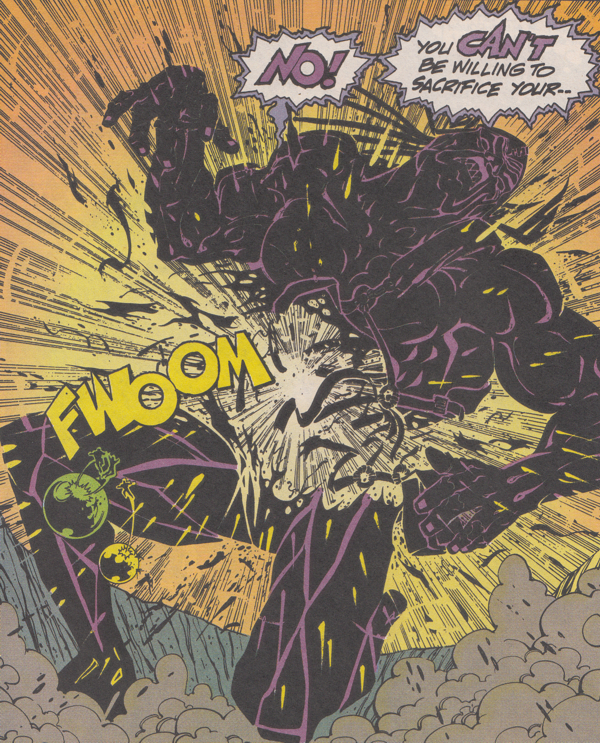 • The panel where Eclipso absorbs all of the other heroes is so gross I'm not going to scan it. Mostly because it's hard to use the scanner when I keep retching.