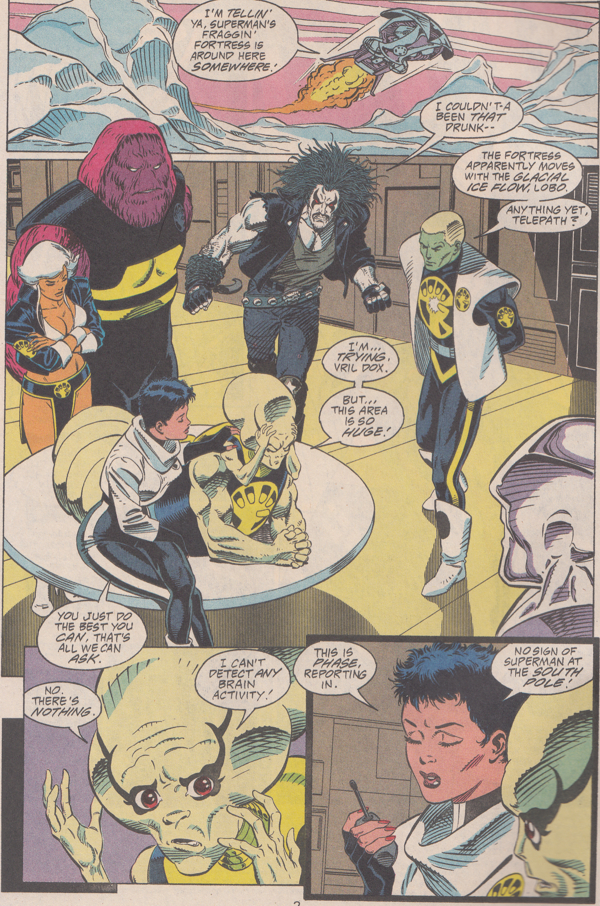• Lobo immediately gets his ass beat by Eclipso Superman because in 1992, the main way to show that somebody was really powerful was to have them defeat the Main Man. Every writer wanted to do a story where the hero they were writing defeats Lobo to show that they could best the absolute best. Which wound up making Lobo a huge punching bag who didn't seem capable of beating everybody. Also he was ass-raped in Hitman by Bueno Excellente which seemed, up, excessive?