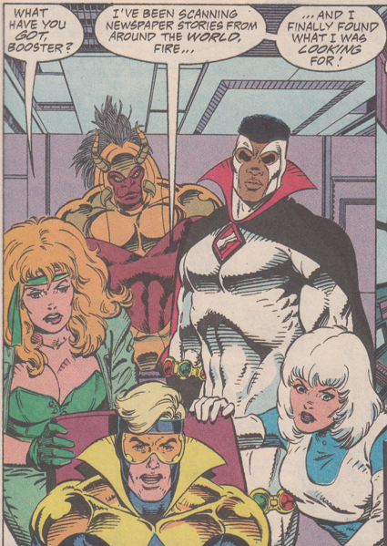 • For some reason, Wildebeest is hanging out with Booster, Fire, Ice, and Bloodwynd. I really don't fucking care to know why. I'm more interested in why Fire has blonde hair.