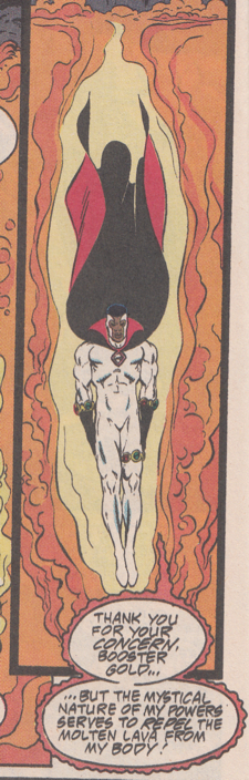 • Later we'll discover that Bloodwynd is really J'onn J'onzz in disguise. I'm not sure that was always supposed to be the plan or, if it was, nobody told Robert Loren Fleming because Bloodwynd tackles the volcano like a champ who isn't at all a Martian.